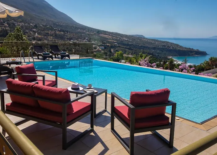 Die 1-Zimmer- Lourdas Beach View Villa Vlachata liegt 7 km weit weg vom Kloster von Agios Gerasimos und bietet einen Swimmingpool mit einem Whirlpool und einem gemeinsamen Lounge-Bereich. Diese Villa bietet eine Terrasse und liegt ungefähr 10 Minuten Autofahrt vom Berg Ainos entfernt.